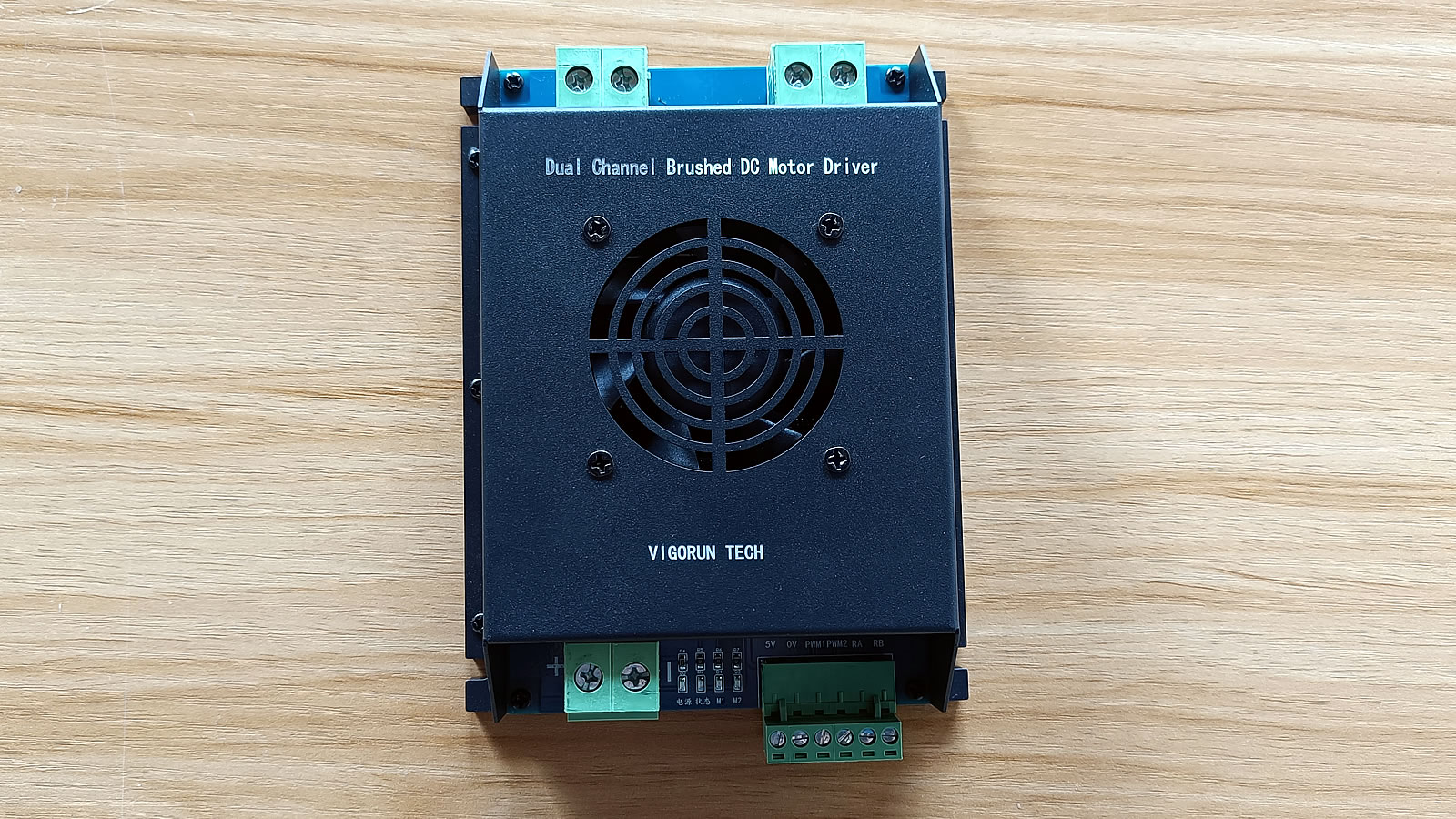 c) Large fan and thick aluminum plate are conducive to rapid heat dissipation, which can ensure the mower to work continuously for a long time.