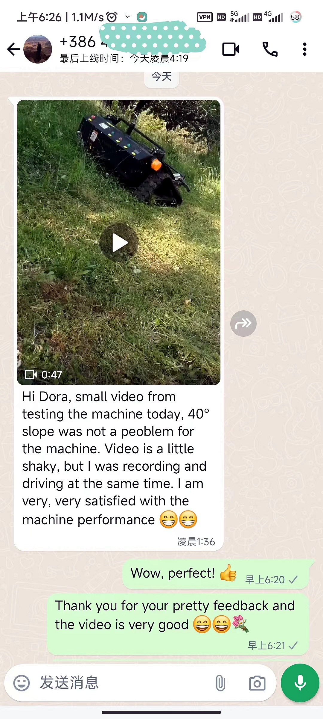 As communication progressed, we shared feedback videos from other satisfied customers who had successfully used our mower on similarly challenging slopes. Encouraged by these testimonials and our commitment to honesty, Joze’s trust in our product grew. Convinced that our mower could handle his steep slope, he made the decision to purchase it.