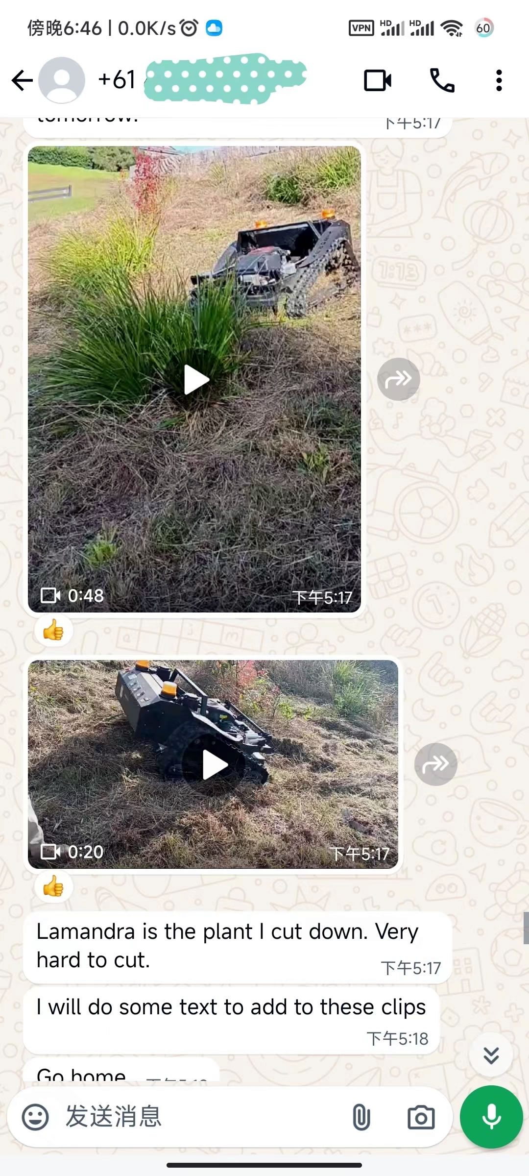 Ron’s Experience with the VTLM800 Ron shared his experience, emphasizing the VTLM800’s exceptional capabilities. He described Lamandra, a tough plant he regularly cuts down, noting how challenging it was before using our mower. With the VTLM800, he managed to recoup its cost in just 8 weeks by offering efficient mowing services.