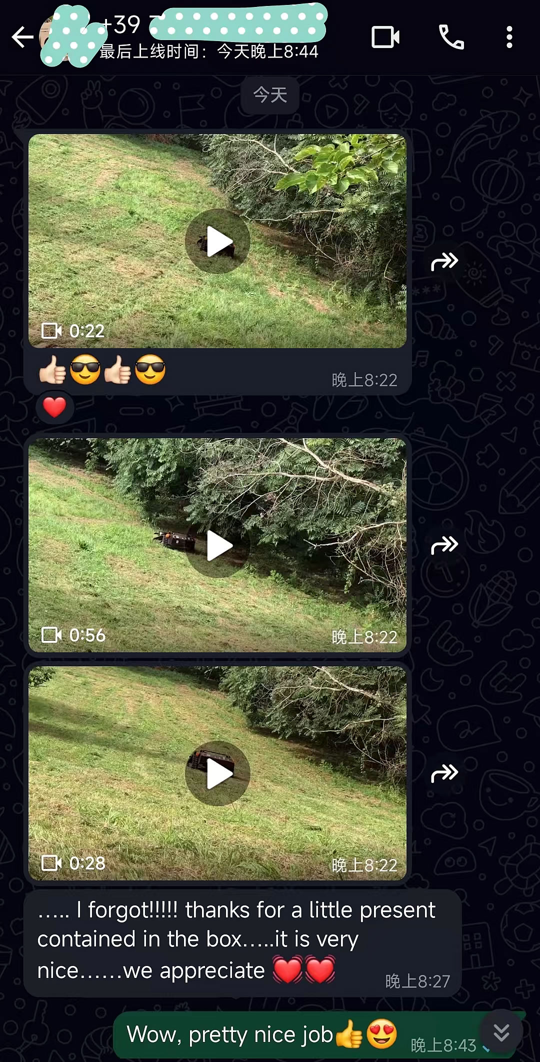 Mario from Italy recently shared several videos of himself using our VTLM800 remote control lawn mower, and he’s very satisfied with the results. He also praised our shipping and customer service, and is eager to recommend our products to his friends.