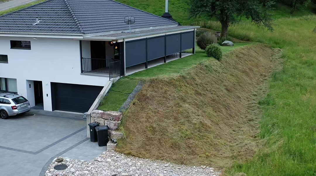 When Alain Greub from Switzerland first reached out to us at Vigorun Tech, he had a challenge. The area beside his home featured an extremely steep slope that made mowing difficult. He shared photos to show the challenging terrain, and we confirmed that our VTLM800 remote-controlled mower would be more than capable of handling it.