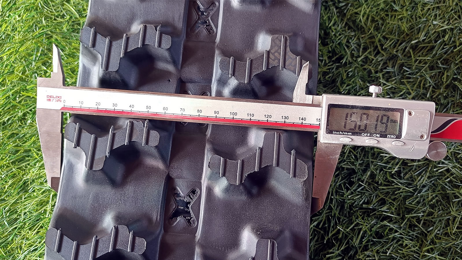 The rubber track, measuring 15cm in width, is specifically designed for heavy-duty construction machinery, providing durability for over five years.