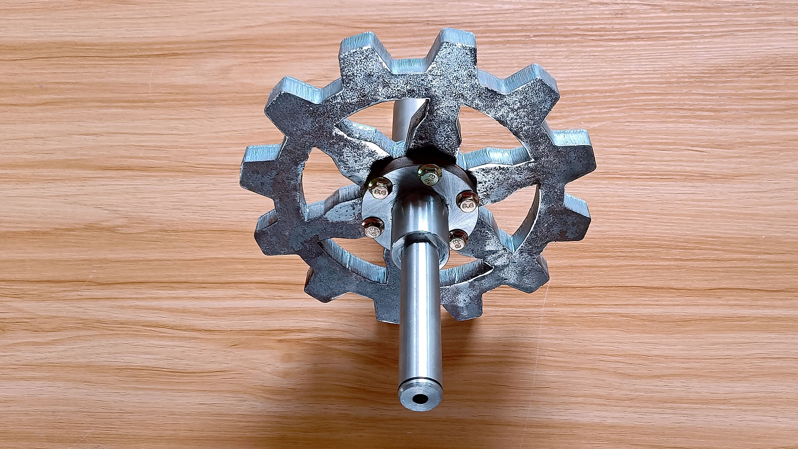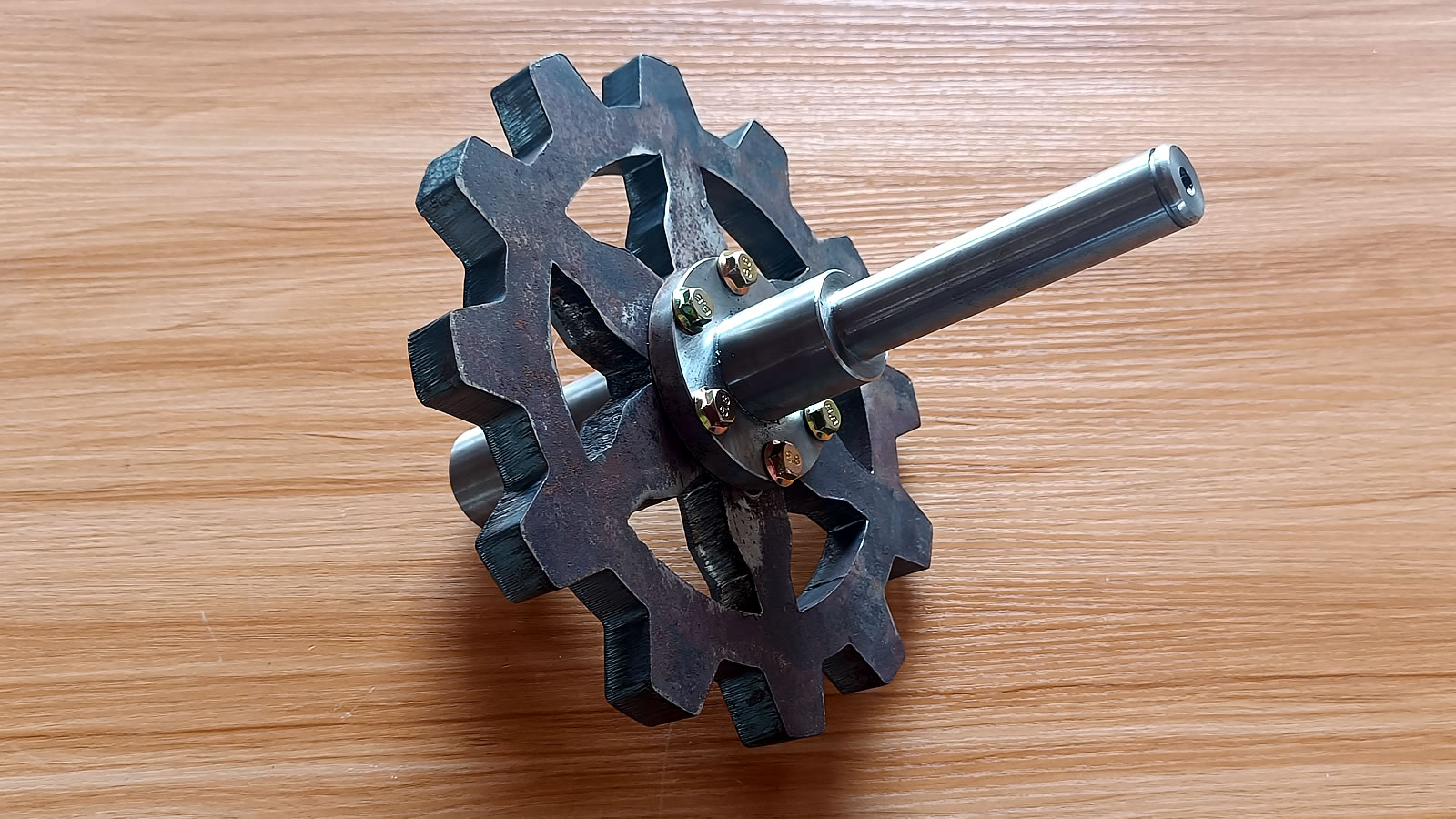 Made from 20mm thick plate, the transmission shaft is connected via a flange and is supported by carefully designed bearings and bearing brackets on both sides.