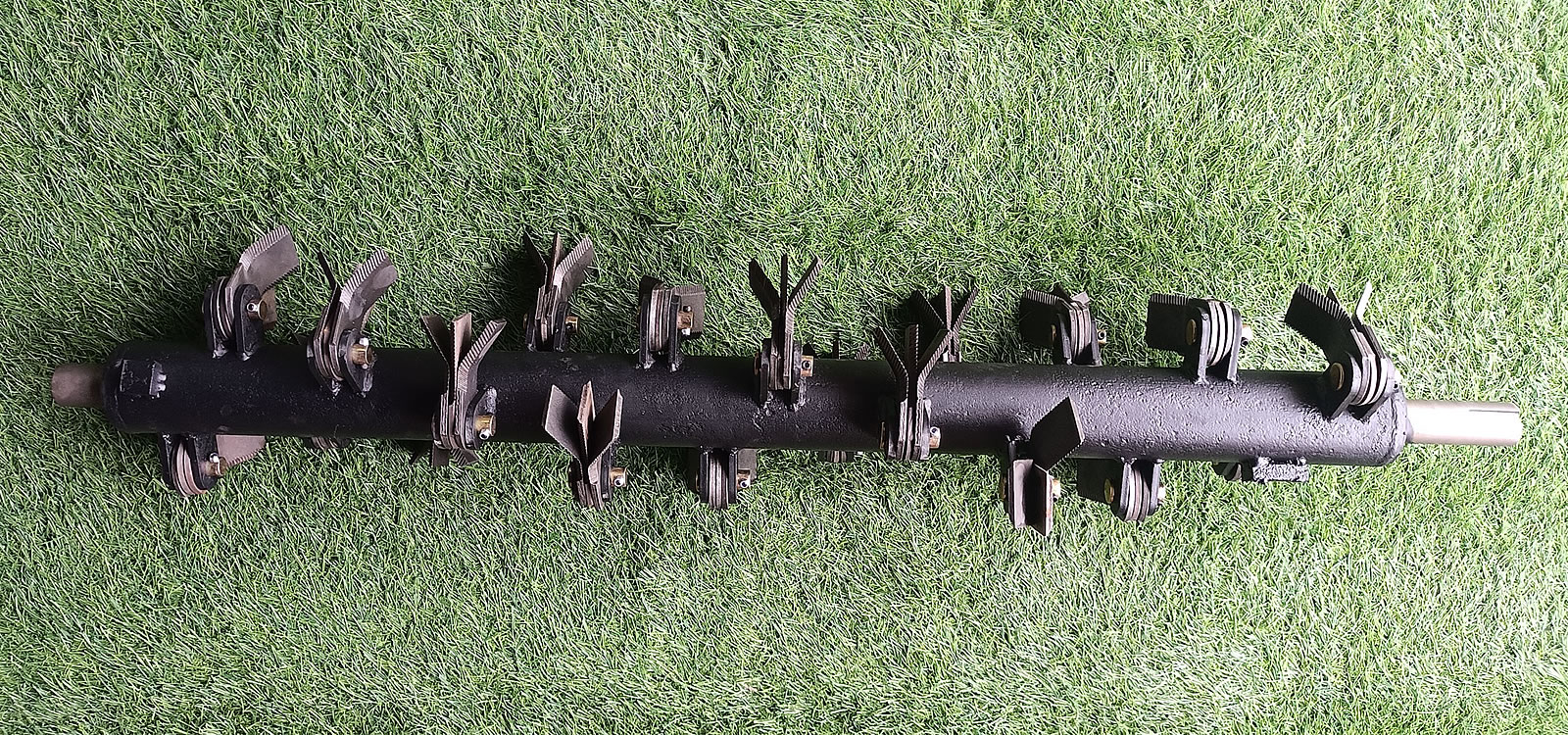 The flail shaft undergoes dynamic balancing after the blade holder is welded, considering that it needs to rotate at high speed during grass-cutting operations.