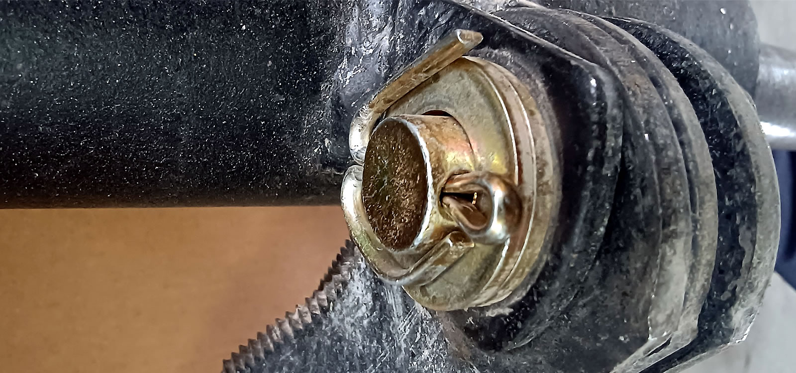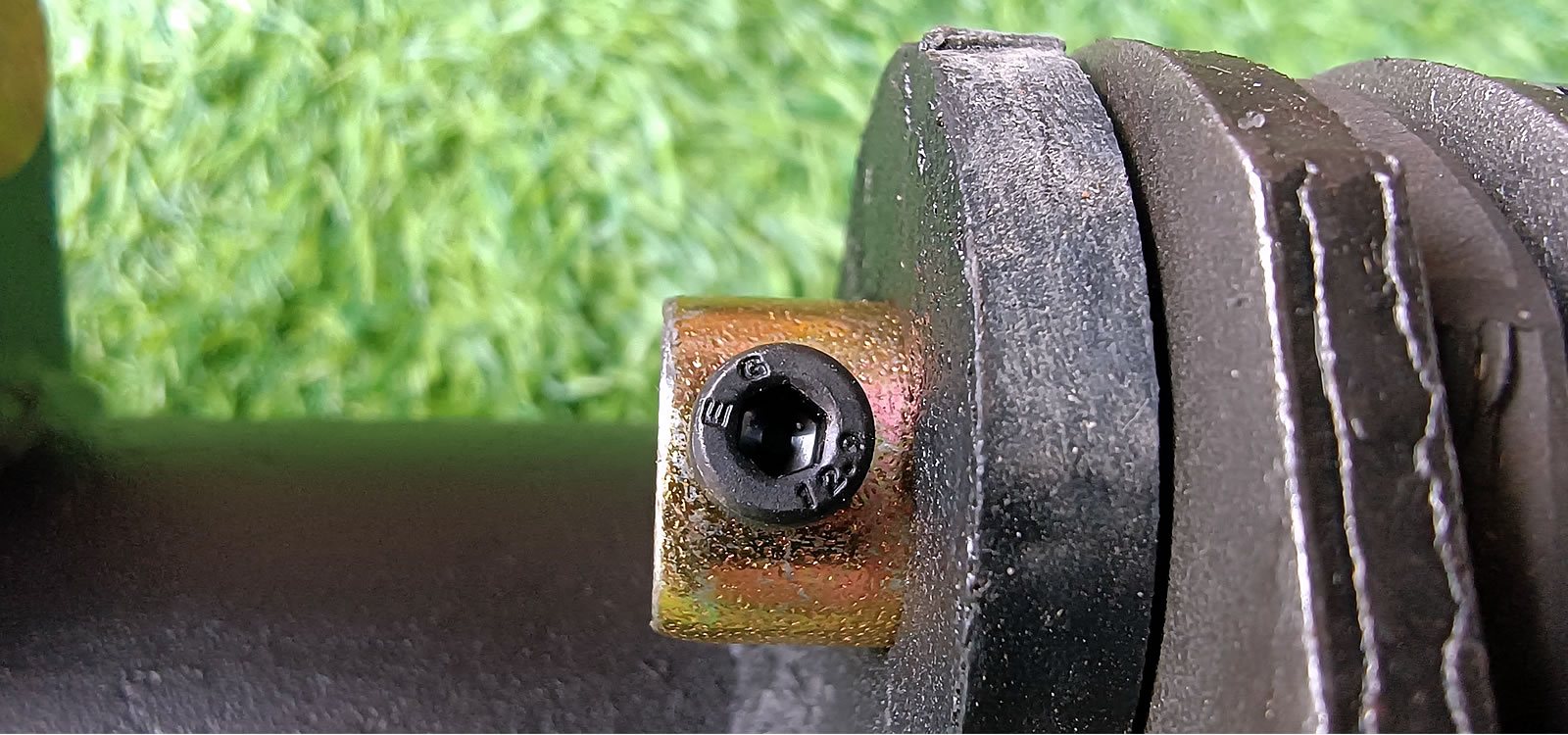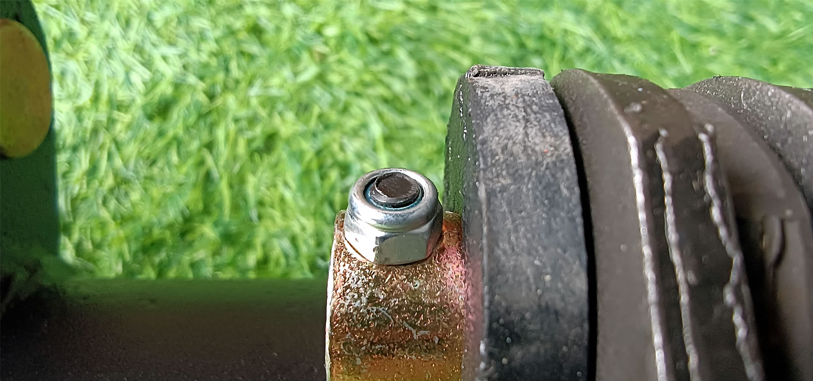 During testing, it was found that cotter pins were too long and could get entangled with grass or other tough materials over extended mowing periods, leading to wear and the risk of detachment.