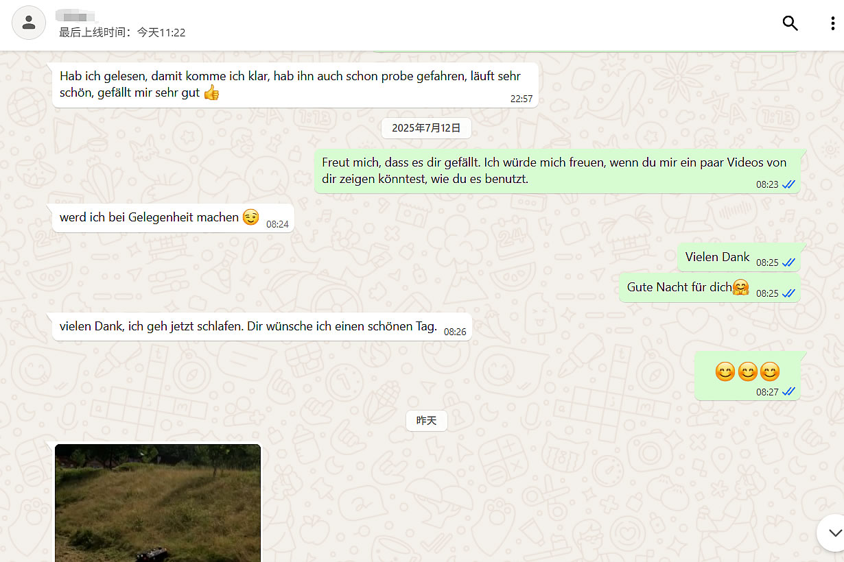 Shortly after testing the mower, the customer kindly shared two videoes showing the mower in action. The cutting results were impressive, and the customer expressed great satisfaction with the machine’s performance.