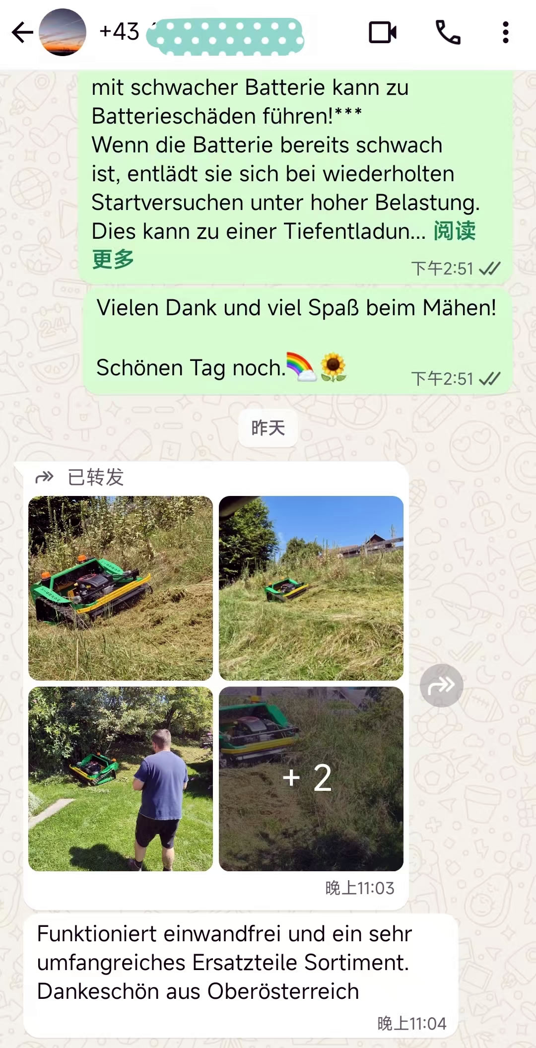Austrian Customer Praises VTLM800 Remote-Controlled Mower: Perfect Performance & Complete Spare Parts