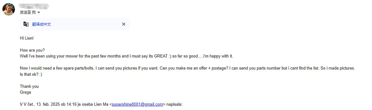 Hearing such positive feedback is truly rewarding. It shows that our mower not only performs well in real conditions but also brings genuine satisfaction to those who use it. What makes this story even more exciting is that his neighbor, impressed by the results, also wants to own a mower.