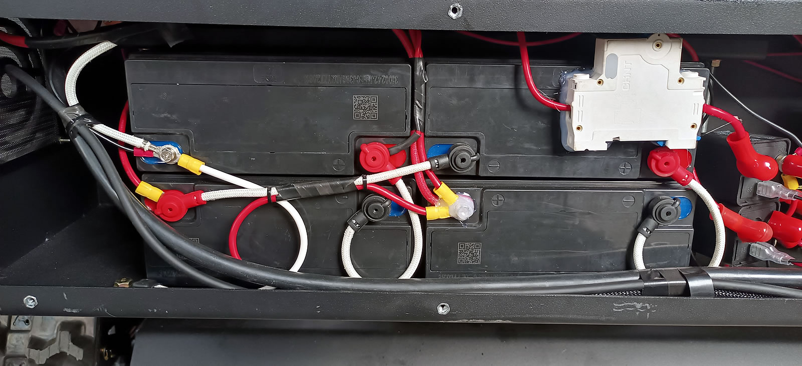 - Driving System – The entire movement of the machine, including forward, reverse, and turning, is powered electrically. The electricity is supplied both from a generator and from the onboard battery.
