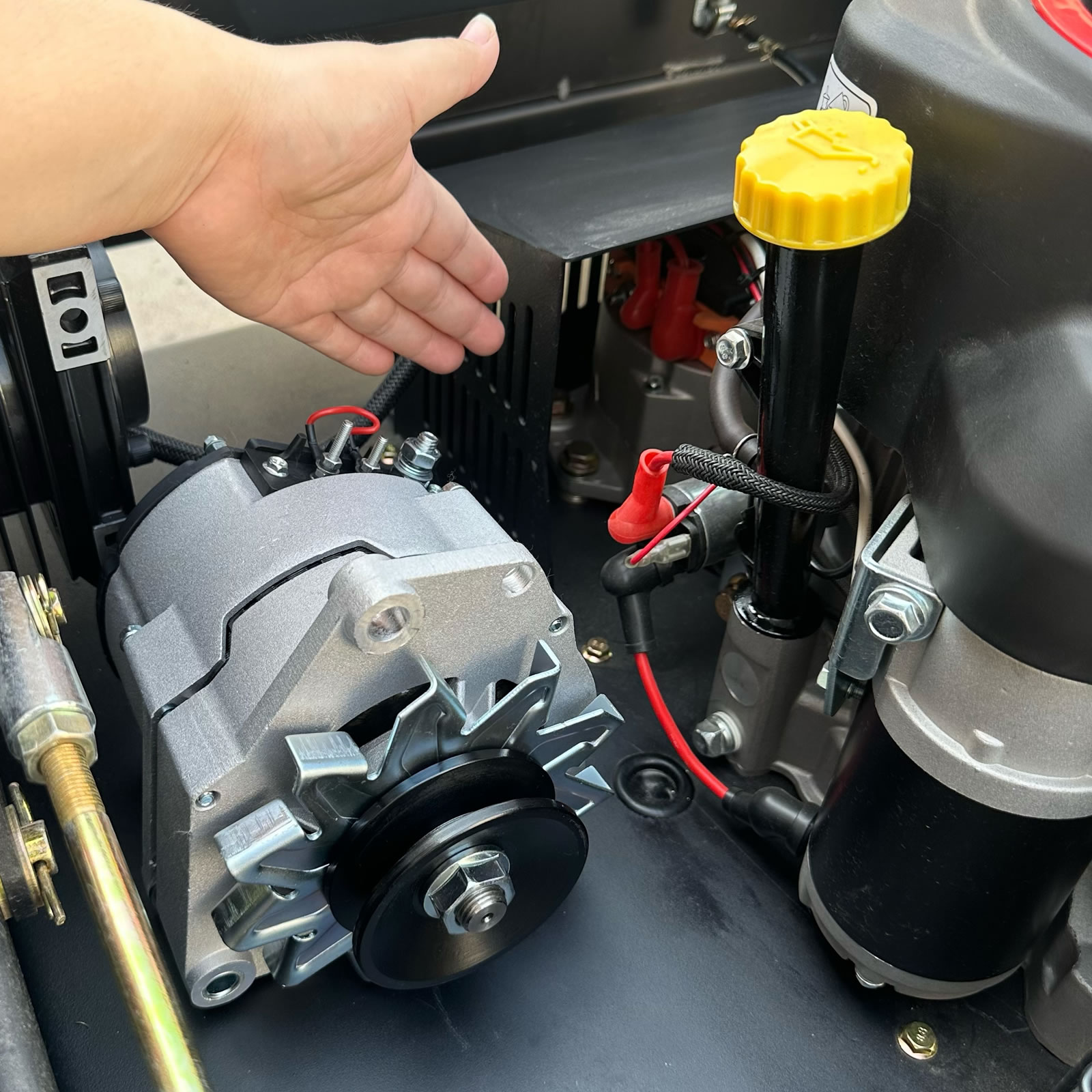 This electricity is delivered directly to the drive motors for mobility, and any excess power is used to recharge the battery. Even when the engine is not running, the stored battery power can supply the drive motors, allowing the mower to perform basic movements. This feature enables the machine to carry out simple repositioning or site adjustments without engaging the engine, providing greater flexibility, convenience, and energy efficiency in operation.