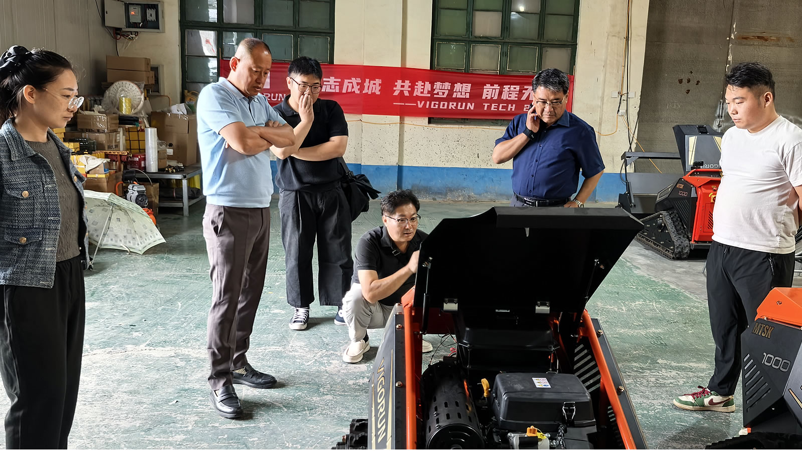 During the visit, our team introduced and demonstrated two flagship products—the VTLM800 remote-controlled lawn mower and the MTSK1000 Remote Multitasker. The visitors showed strong interest in the advanced features and performance of these machines.