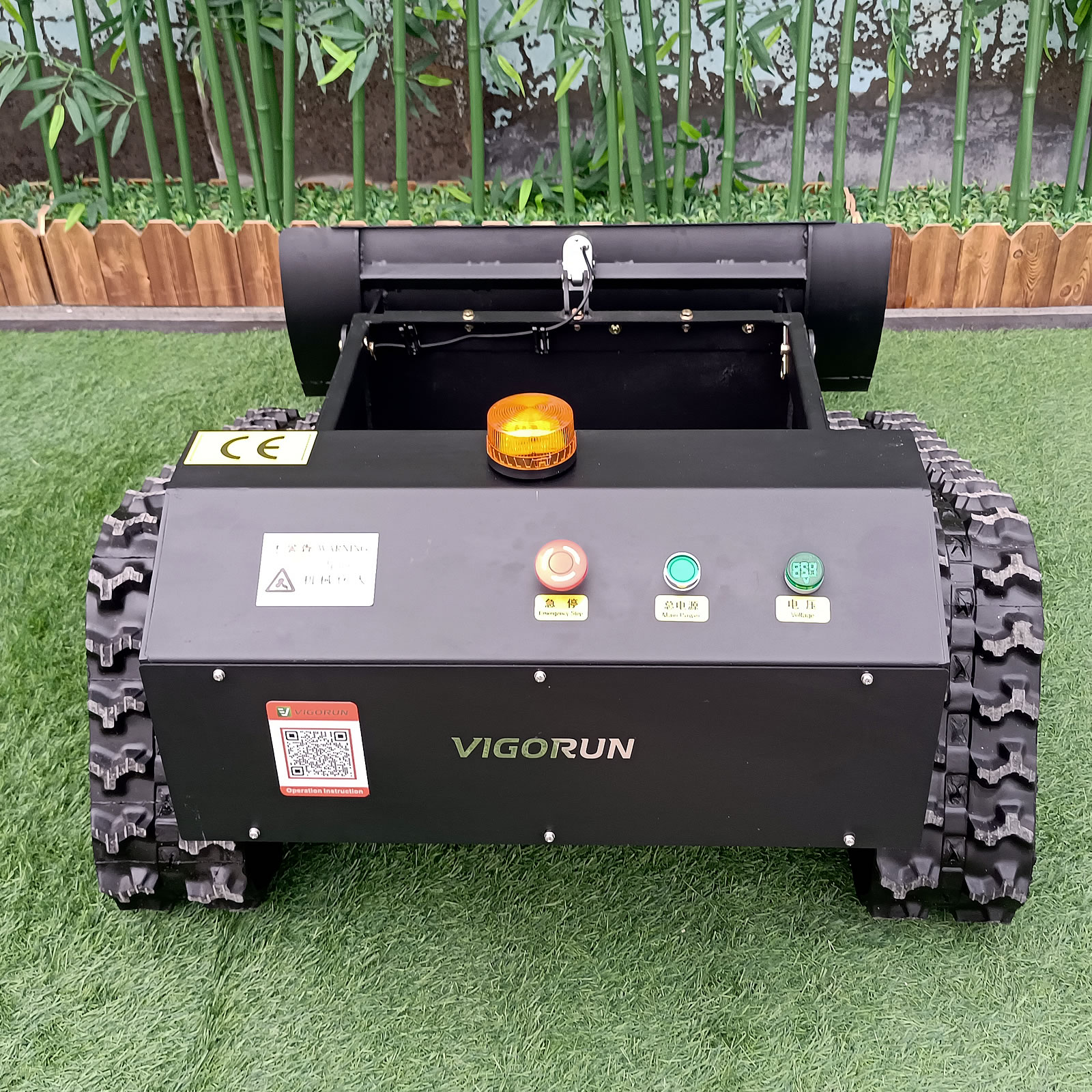 Compared to the standard model, this custom version is equipped with a remote-controlled adjustable snow plow.